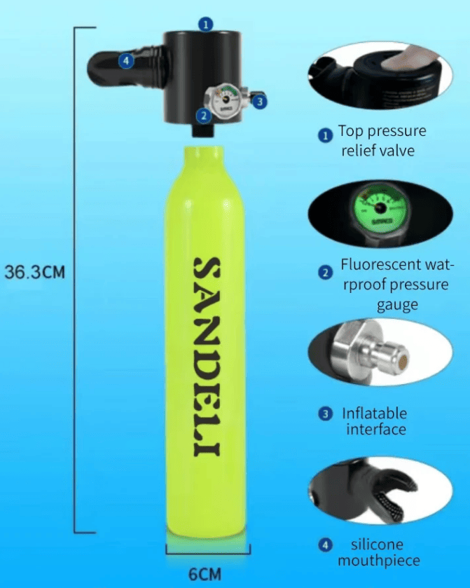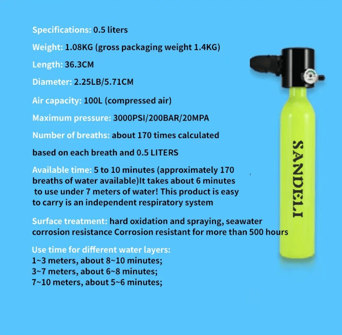 SKU: PSC300PLUS-A-BLACK 0.5L Single-bottle respirator diving apparatus. Respiratory 5-10Minutes snorkel mask snorkeling tube protective back bag, diving gas cylinder, scuba diving, adult men and women