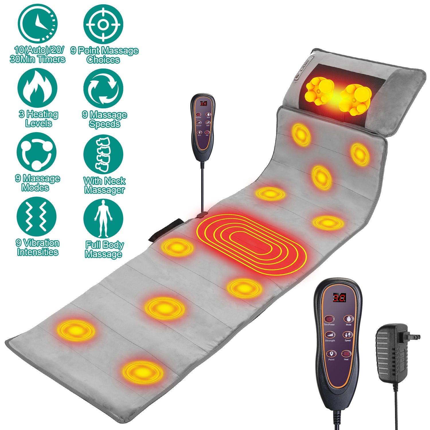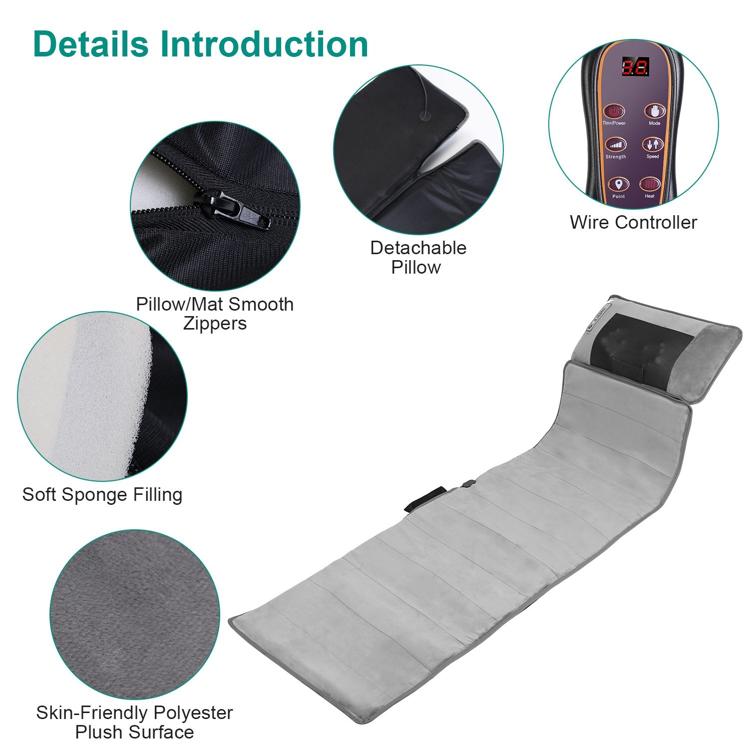 Full Body Massage Mat: Our massage mat features 10 massage points including Back, Buttock, Waist, Thigh, Calf, and heating therapy function, it's able to give you a therapeutic massage that helps release tension, stress, and fatigue after a long work day. You can choose 9 designated vibration modes, 9 point-selection vibration modes, and enjoy full control over 9-level vibration intensity and 9-level speeds as you hit all the right spots.