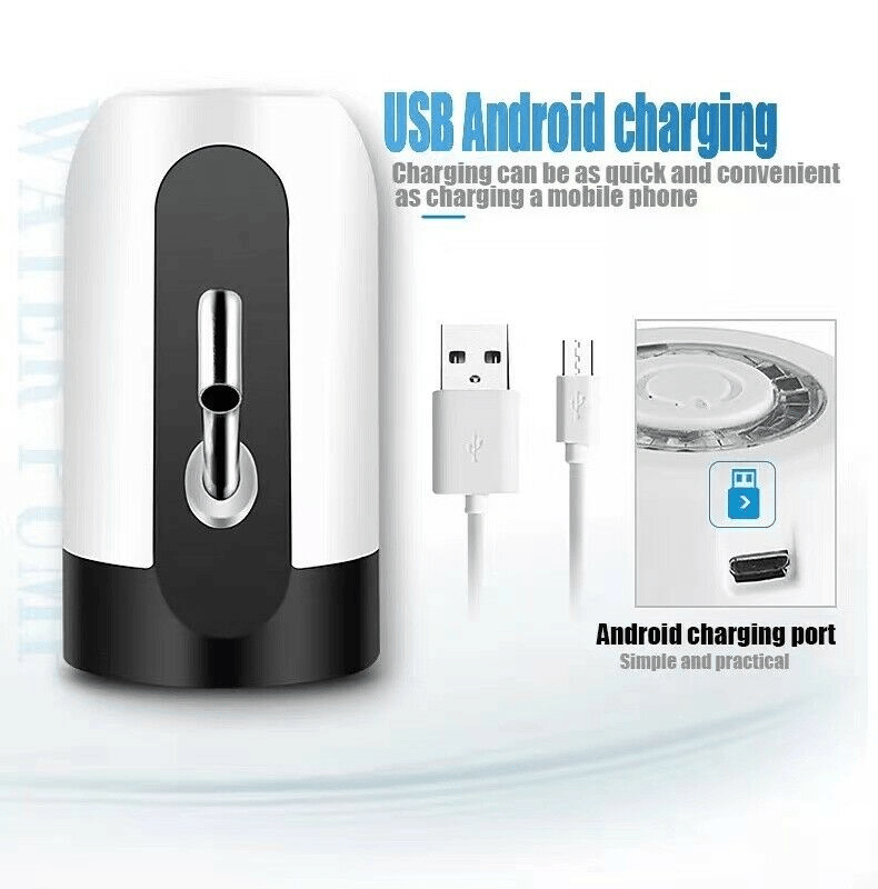 USB Rechargeable: Built in rechargeable battery allows you to use for 30-40 days or around 4-5 bottles of 5 gallon water once full charged.